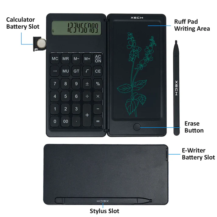One of a kind 2 in 1 LCD E-Writer with 12 Digit Calculator