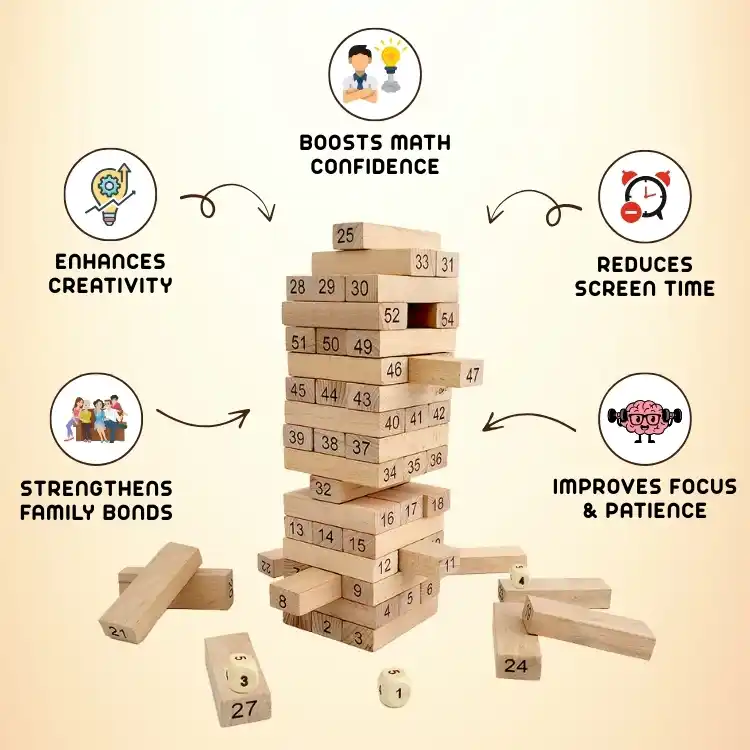 The Feelto Wooden Number Tower Block combines the classic fun of stacking games with educational dice play to create an engaging experience for the whole family. Designed with safe, natural materials and Montessori principles, this game sharpens fine motor skills, counting, patience, and focus while encouraging laughter and bonding. Perfect for kids, parents, and educators, it offers screen-free, interactive fun that’s easy to learn but full of exciting challenges.