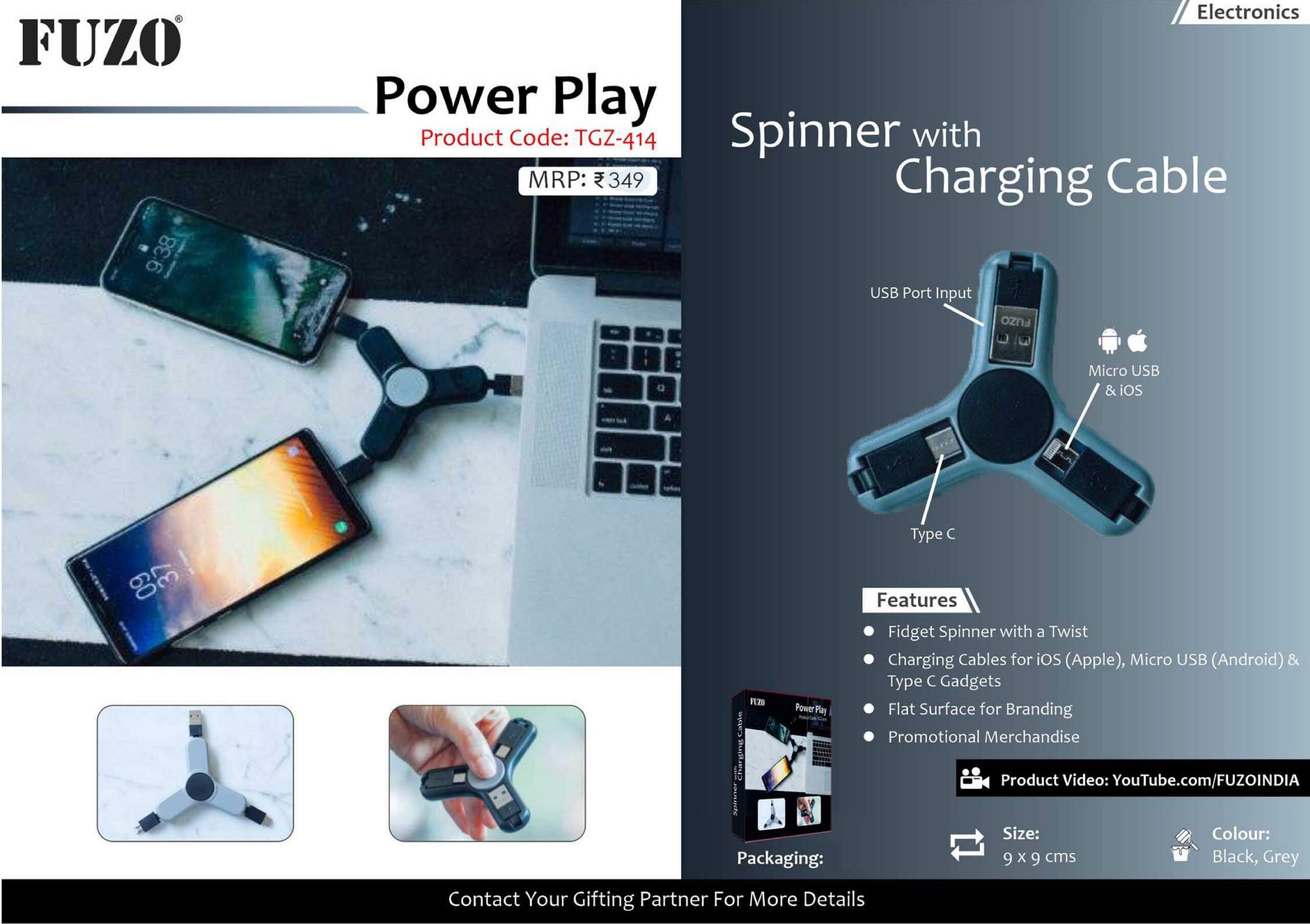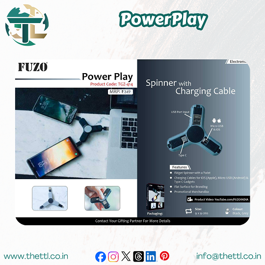 Fidget Spinner with a twist Charging cables for iOS, Mirco USB and Type C Flat Surface Promotional merchandise