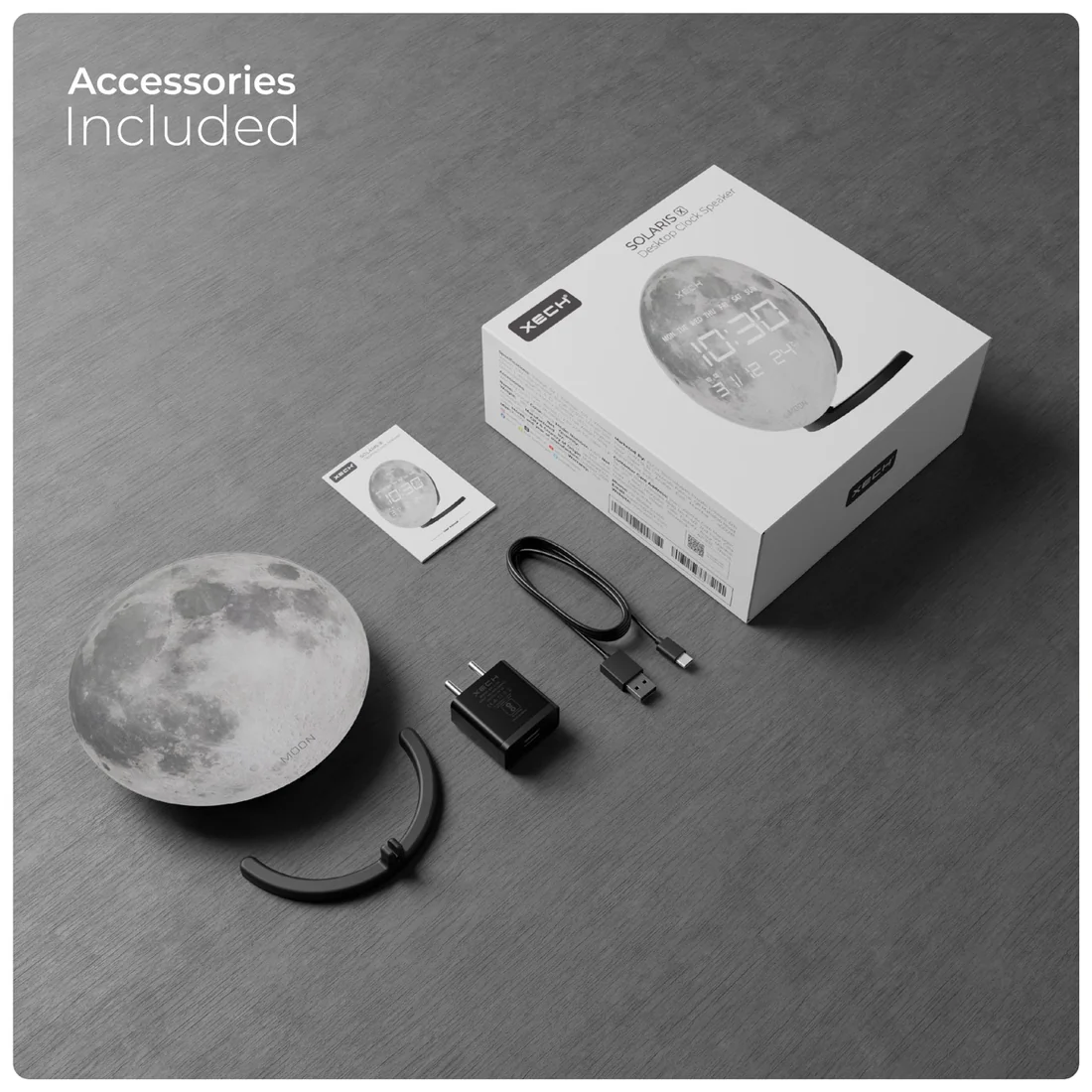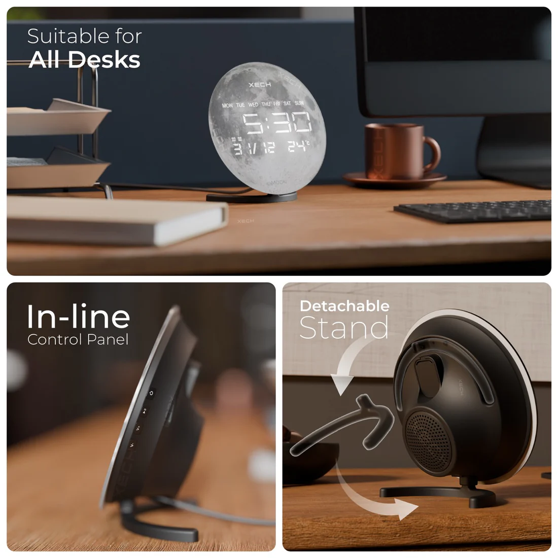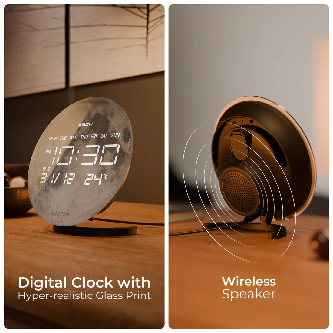 Explore time and sound like never before with XECH Solaris X. Featuring hyper-realistic glass prints, this sleek device brings high-fidelity sound and effortless time-syncing to your space. Crafted in India, Solaris X combines style, precision, and innovation—perfect for those who want more from time. Its elegant design and cosmic imagery make it a stunning addition to any desk, adding both beauty and function to your workspace.