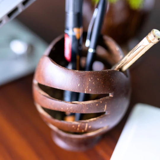 Thenga Coconut Shell Pen Holder/Stand | Wooden Pen Holders (Set of 1)