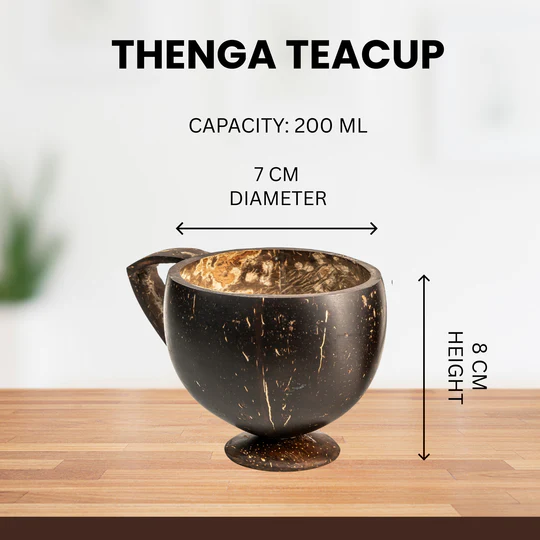 Handmade Tea or Coffee cups made from Coconut Shell by artisans in Kerala and specially designed for every day use. Since they are completely natural they are totally safe for your hot tea or coffee, perfect to live a chemical free life for you and your family.