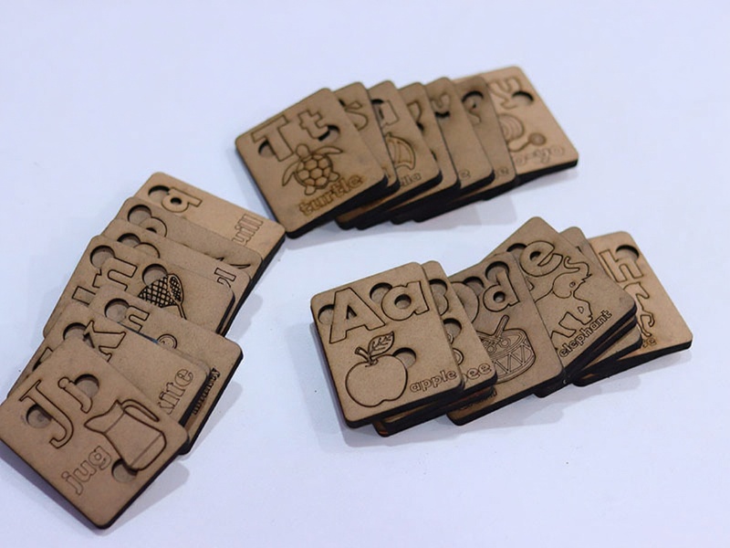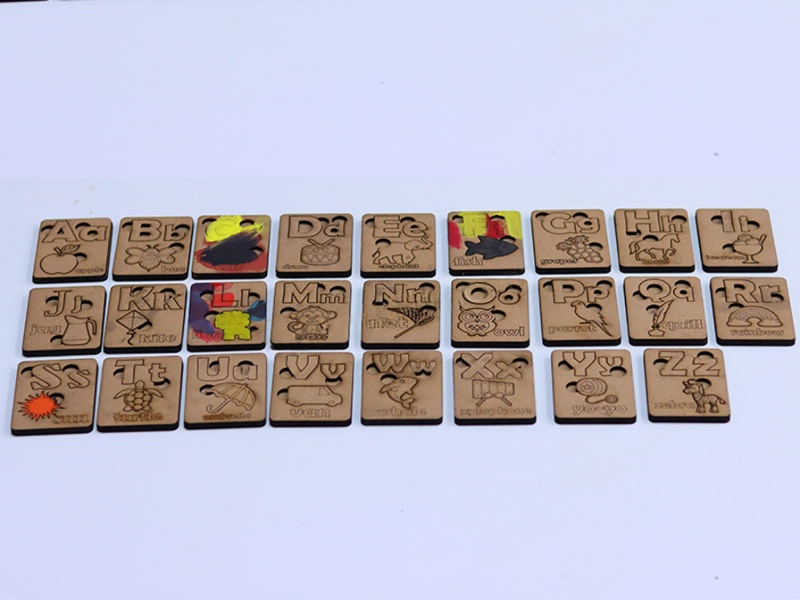 Wooden Alphabet Learning Tiles – A to Z Laser Engraved Educational Puzzle for Kids | Early Learning Montessori Toy