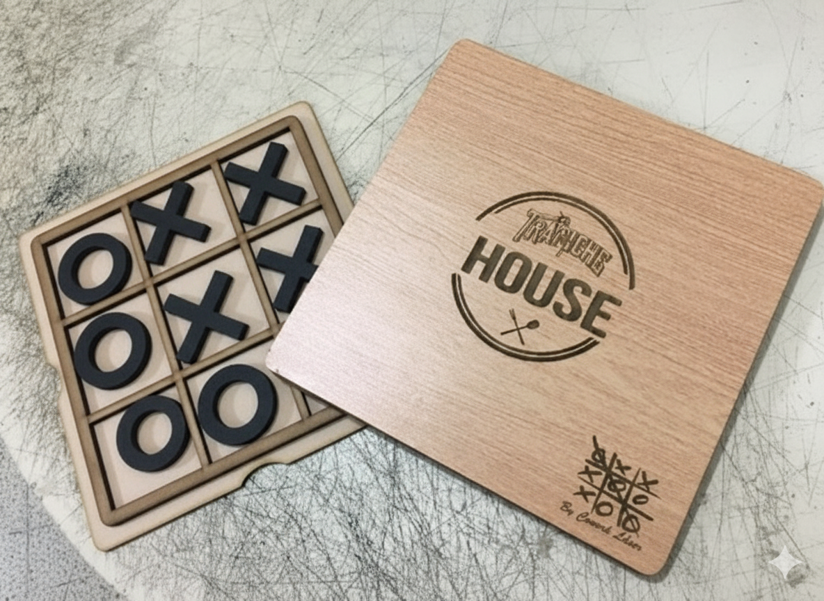 Personalized Wooden Tic-Tac-Toe Game – 3×3 Grid with X & O Pieces
