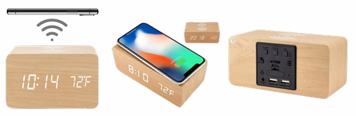 XG-T45 Wooden LED Digital Alarm clock with wireless charger