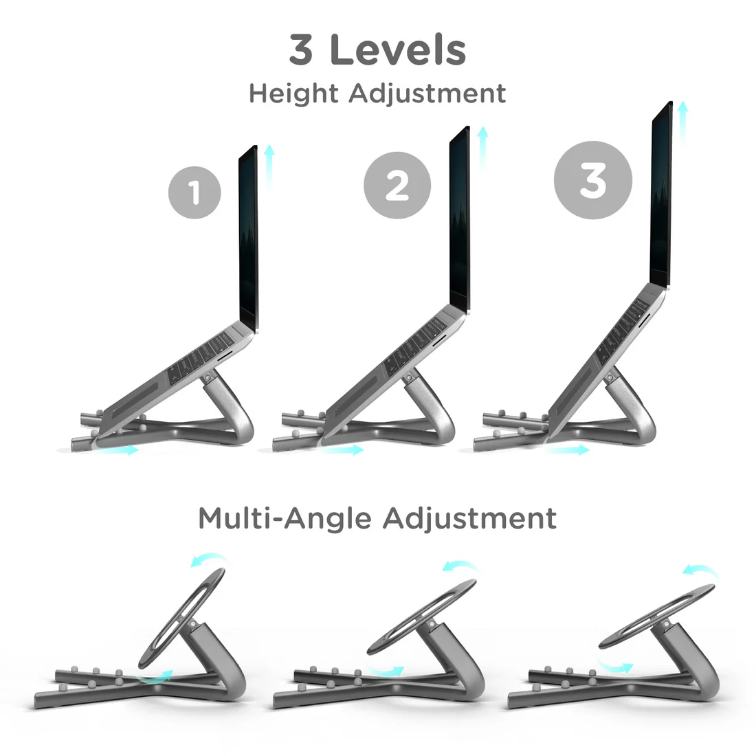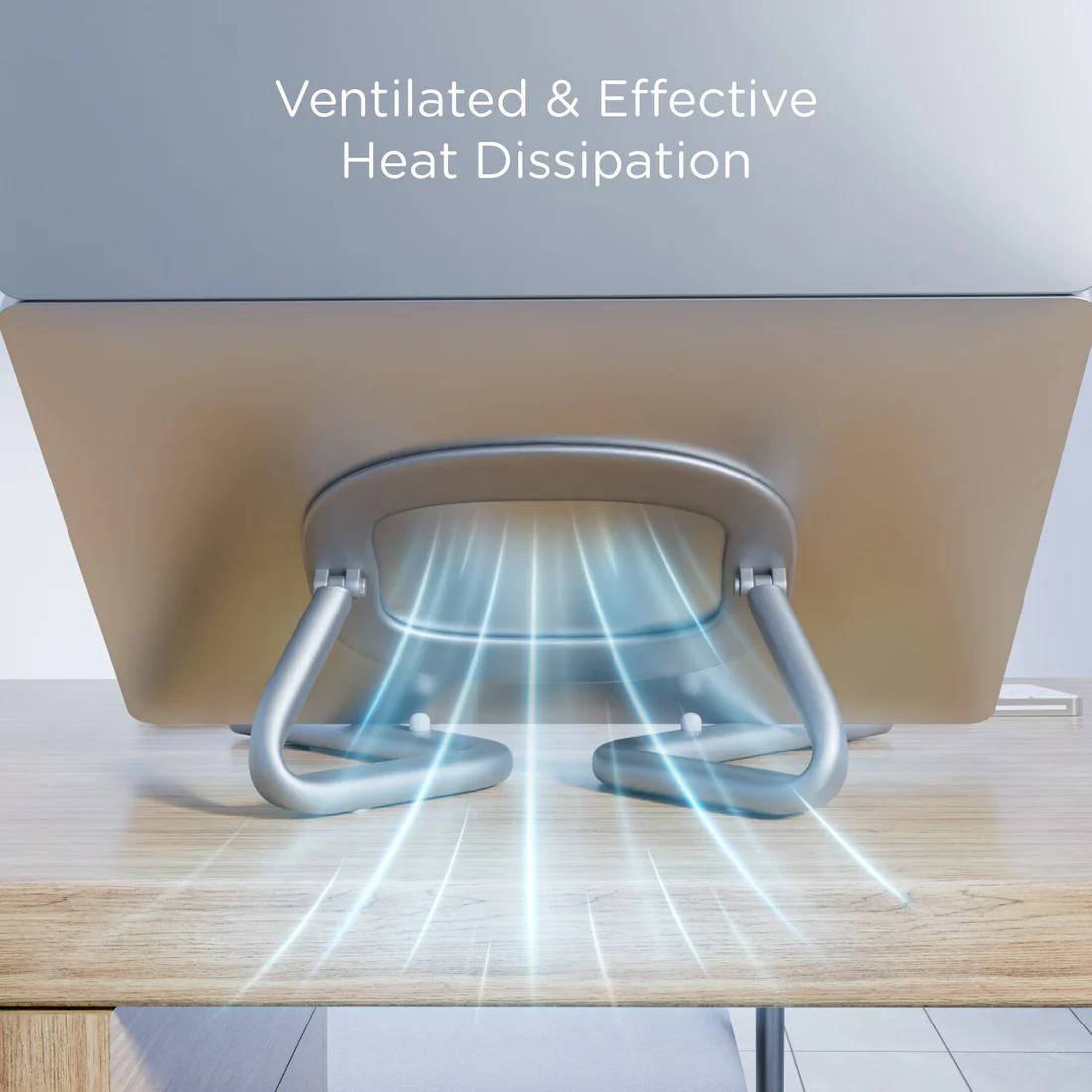 The ventilated design keeps your laptop cool during extended use, while non-skid silicone pads provide stability. Zod accommodates laptops of all sizes, be it large or small and even small tablets, and iPads, making it a versatile solution for work, gaming, entertainment, study, and hands-free calling.